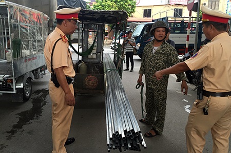 CSGT Hà Nội xử phạt nghiêm xe ba bánh chở hàng hoá cồng kềnh. Ảnh: báo Công an nhân dân |