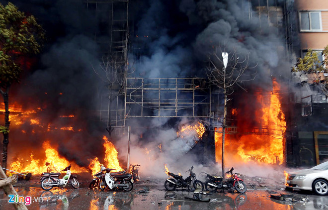 Hiện trường vụ cháy quán karaoke ở Cầu Giấy làm 13 người chết. Ảnh: Tri thức trực tuyến |