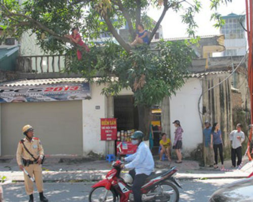 Hai người phụ nữ ở quận Long Biên (Hà Nội) mang bánh mì, nước uống trèo lên cây xoài trước cửa nhà “cố thủ” nhiều giờ liền để phản đối cơ quan chức năng chặt bỏ xây xanh...