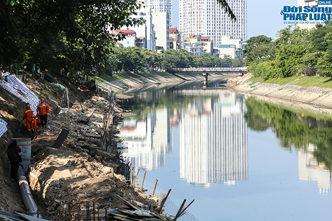 Nhiều ngày qua, các công nhân đang gấp rút thi công, lắp đặt một số hạng mục của hệ thống cống ngầm gom nước thải tại sông Tô Lịch (Hà Nội) trên đoạn đường Nguyễn Đình Hoàn (quận Cầu Giấy) và Vũ Tông Phan (quận Thanh Xuân). |
