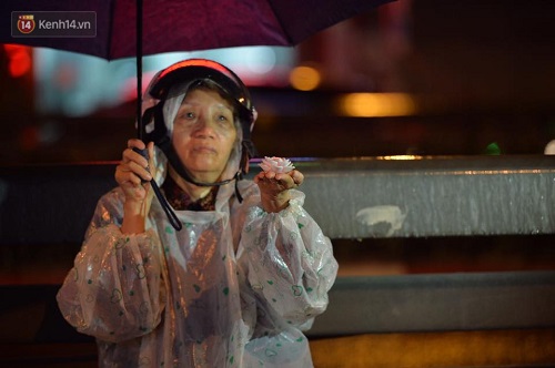 19h30 tối, Đại lễ Vu Lan chính thức bắt đầu. Lúc này, thời tiết càng về tối càng mưa nặng hạt hơn nhưng lượng người đổ về vẫn rất đông. Ảnh: Người Đưa Tin |