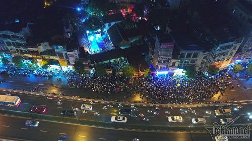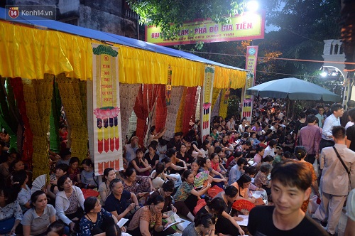 Chiều tối ngày 24/8 (14/7 âm lịch), hàng nghìn người dân đổ về ngồi chật kín đoạn đường trước cửa chùa Phúc Khánh (Đống Đa, Hà Nội) tham dự lễ Vu lan báo hiếu, tuy nhiên lượng người tham dự năm nay ít hơn so với mọi năm nên cảnh ùn ứ trên phố Tây Sơn cũng giảm. Ảnh: Kênh 14 |