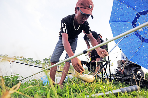 “Năm ngoái cá ở các ao ra nhiều, tôi câu được vài con nặng tới 5-7 kg nhưng năm nay cá nhỏ hơn. Cá câu được tôi mang về nhà ăn, nếu thừa thì cho họ hàng, hàng xóm” – anh Nguyễn Thanh Tùng, một cần thủ có vẻ chuyên nghiệp và "sát cá" chia sẻ. |