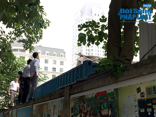 Gần trưa, nhiều người dân hiếu kỳ vẫn tụ tập, trèo tường để theo dõi vụ việc. |