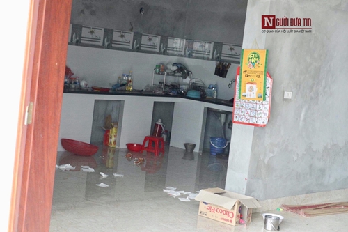 Ngôi nhà lún xuống khoảng 3-4m, đồ vật trong nhà cũng bị xáo trộn theo |