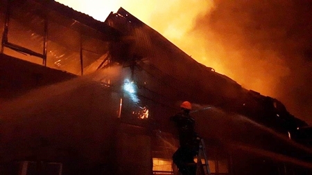 "Khi đang ăn cơm thì tôi nghe thấy tiếng nổ kèm theo khói đen và lửa bốc cao. Sau đó, ngọn lửa nhanh chóng lan rộng trong kho hàng, nhiều người dùng bình cứu hoả mini khống chế ngọn lửa nhưng không thành", bà Thảo một nhân chứng ở hiện trường cho hay. Theo nguồn tin từ người dân địa phương, nguyên nhân ban đầu của vụ hỏa hoạn có thể là do chập điện.