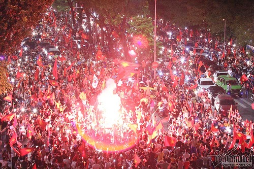 Hàng triệu người hâm mộ đổ ra đường ăn mừng chiến thắng của Việt nam trước Syria sau trận tứ kết ngày 27/8. Ảnh: Vietnamnet |