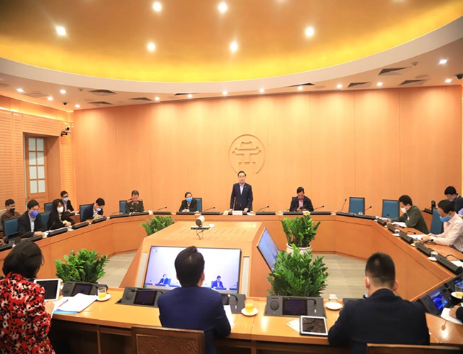 Ban chỉ đạo phòng chống dịch COVID-19 Hà Nội họp phiên thứ 88 với các đơn vị, quận huyện. (Ảnh: VietnamNet) |