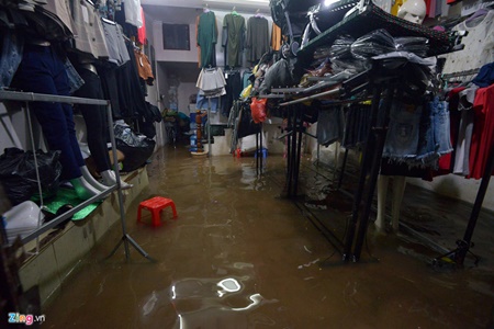 | | Nhiều quầy hàng trong khu vực chợ Xanh, Cầu Giấy bị nước tràn vào. Ảnh: Tri thức trực tuyến |