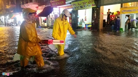 | Công nhân thoát nước kịp thời có mặt làm nhiệm vụ khởi thông dòng chảy. Ảnh: Tri thức trực tuyến |