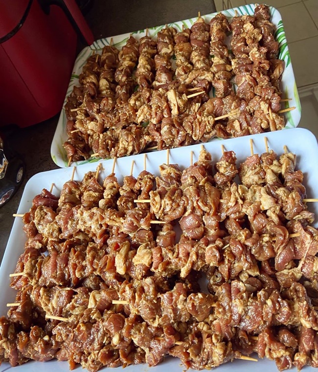 - Trước khi mình xiên thịt, bóp 1 ít chanh vào thịt và bóp đều, vì chanh làm cho thịt mềm hơn.