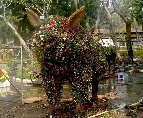 | Một công nhân môi trường tại đây cho hay, công việc tạo hình bắt đầu từ ngày 21/1 và dự kiến hoàn thành trong ngày 25/1 (28 Tết). |