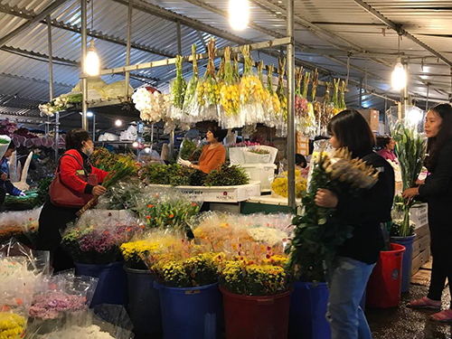 3h sáng, kẻ bán người mua vẫn tấp nập tại chợ hoa Quảng Bá. |