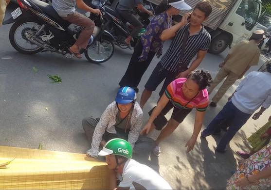 | Nạn nhân được đưa ra khỏi hiện trường trong sự đau đớn của người thân. Ảnh: Người đưa tin |