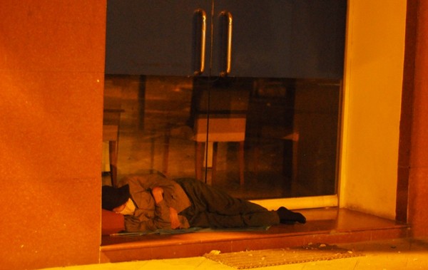 Cảnh người vô gia cư co ro trong đêm Giáng sinh
