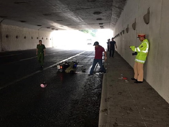 Người đàn ông được phát hiện tử vong bên cạnh xe máy trong hầm chui Tây Mỗ trên đại lộ Thăng Long, nghi là do tai nạn giao thông.