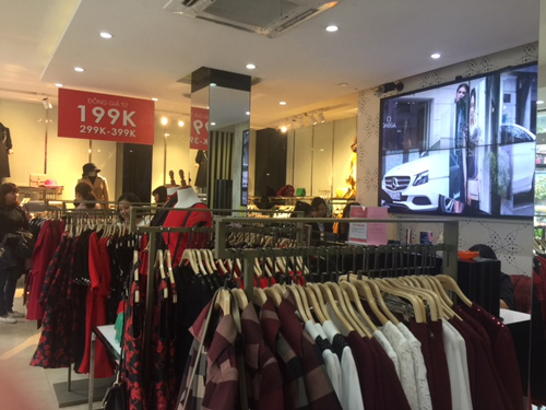| Một hãng thời trang nam trên đường Cầu giấy cũng đưa ra những khuyến mãi hấp dẫn. |