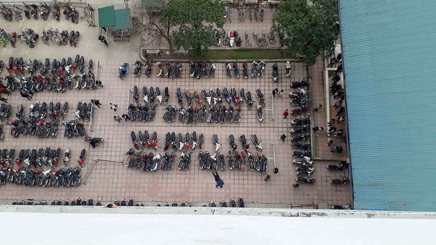 Nghe tiếng động lớn, nhiều sinh viên của trường Đại học Kiến Trúc Hà Nội chạy ra thì hốt hoảng phát hiện thi thể một nam sinh rơi từ tầng cao xuống đất, tử vong.