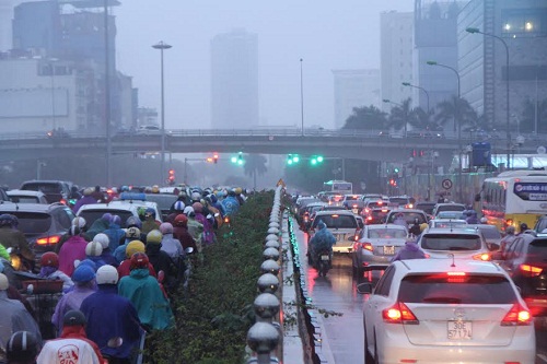 Nhiều người dân dầm mình trong mưa rét trên đường. Ảnh: Tiền phong |