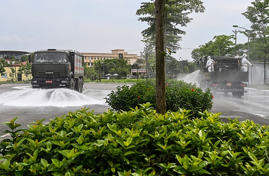 Phun khử khuận tại bệnh viện Bệnh Nhiệt đới Trung ương cơ sở 2. Ảnh: Vnexpress |
