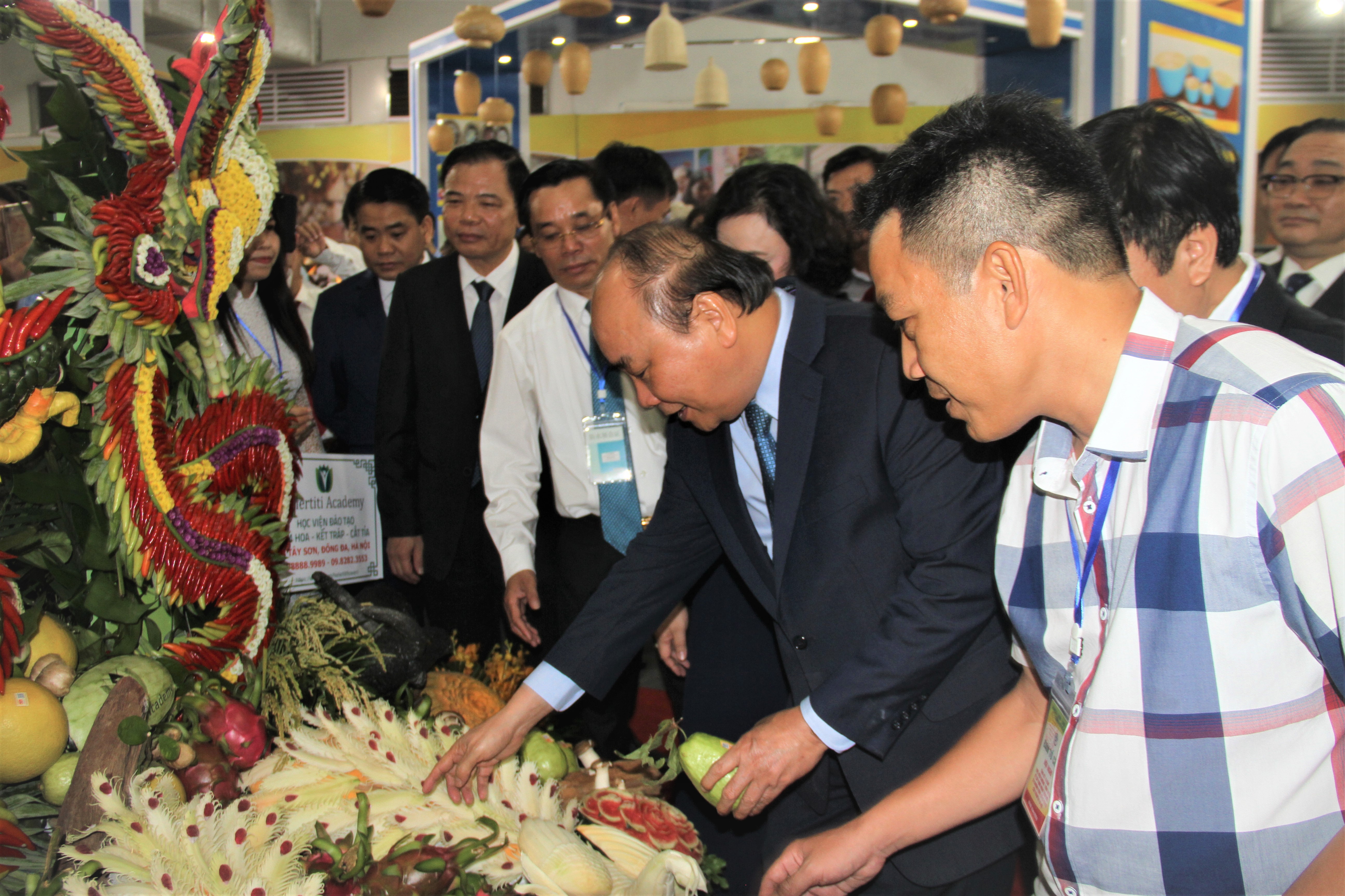 Thủ tướng Nguyễn Xuân Phúc cùng các đại biểu cắt băng khai mạc Hội chợ hàng Nông sản, Thủ công mỹ nghệ - OCOP |