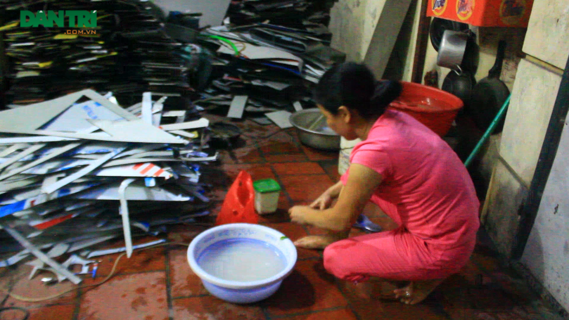 Để tiết kiệm nước, người dân xóm Chùa phải dùng nước vo gạo để rửa chân tay. |
