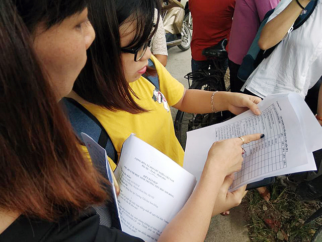 Phụ huynh đang trao đổi về khoản thu gần 8 triệu đồng, trong đó nhiều khoản chưa hợp lý. Ảnh: Dân trí. |