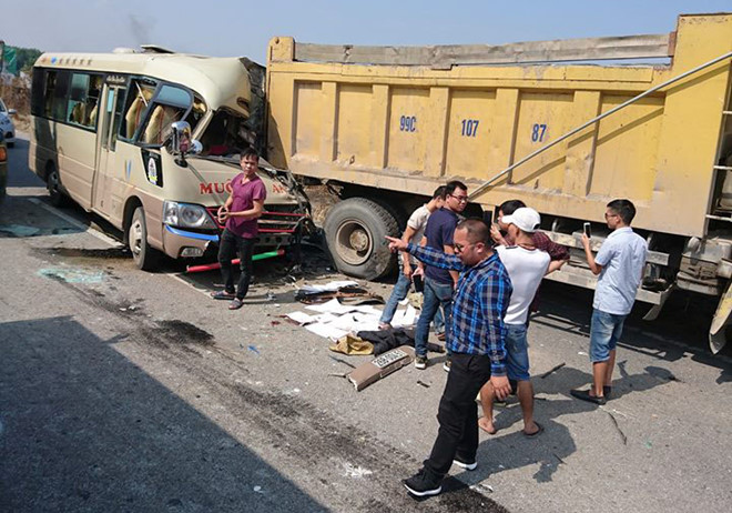 Vào khoảng 11h30 ngày 15/11, xe khách 24 chỗ chưa rõ biển số lưu thông trên QL 18 hướng về Bắc Ninh. Khi đến gần cầu Đồng Dành, xã Đông Xuân, huyện Sóc Sơn, Hà Nội, xe khách đã lao thẳng vào đuôi xe tải chạy cùng chiều.