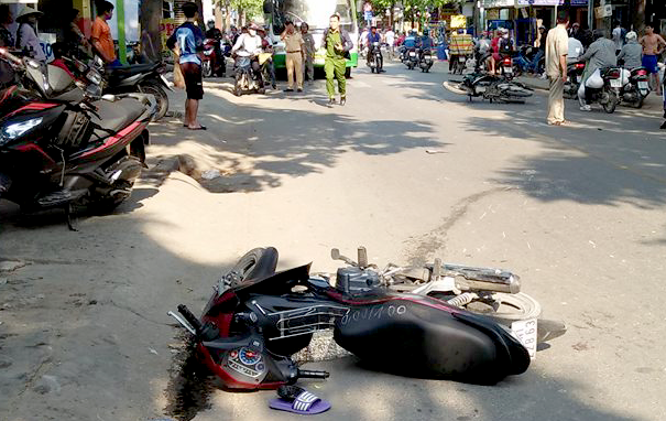 Theo báo Công an Nhân dân, tại hiện trường, chiếc xe máy nằm ở làn đường dành cho phương tiện thô sơ, phần yếm xe bị hư hỏng.