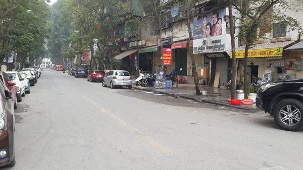 Phố Lê Phụng Hiều chỉ còn ô tô đỗ. |
