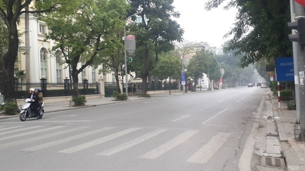 Những con phố tại Hà Nội vắng người qua lại trong chiều 30 Tết. |