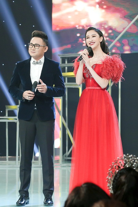 Tối qua, Hà Thu xuất hiện xinh đẹp lộng lẫy trong vai trò host đêm chung kết cuộc thi Duyên dáng Bolero 2018.