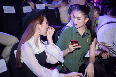 Hai người đẹp không giấu sự vui mừng khi gặp nhau tại sự kiện. Cả hai đã tranh thủ chụp hình và trò chuyện, đặc biệt là chia sẻ kinh nghiệm chuẩn bị hành trang trước khi tham gia các cuộc thi nhan sắc.