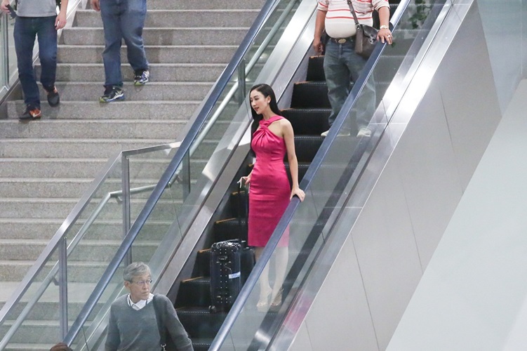 Dù bày tỏ thất vọng khi không đạt được thành tích cao hơn ở đêm chung kết nhưng Hà Thu vẫn mang tâm trạng rất vui vẻ và thoải mái khi trở về. Người đẹp gây ấn tượng với người đối diện ở nụ cười tươi rạng rỡ, và lần này cũng vậy, cô vẫn giữ nụ cười vui vẻ ngay khi bước ra khỏi quầy thủ tục.