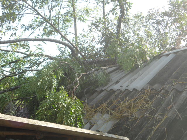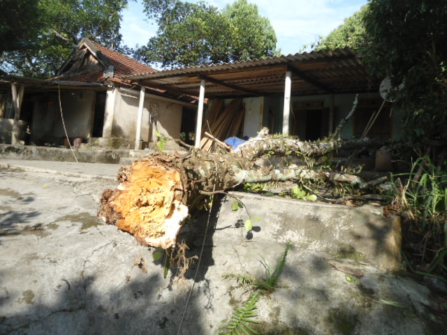| Một cây nhiều năm tuổi cũng bị lốc xoáy làm bật gốc. |