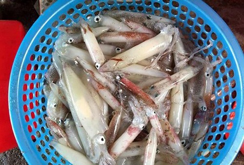Mực chết được chủ bè kinh doanh hải sản vớt lên. Ảnh: báo Dân trí |