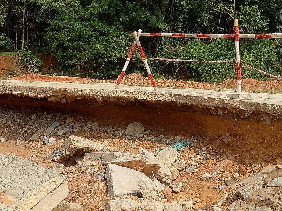 Hệ thống đường giao thông tránh lũ xã Đức Lĩnh, huyện Vũ Quang bị hư hỏng, thiệt hại nặng nề. |