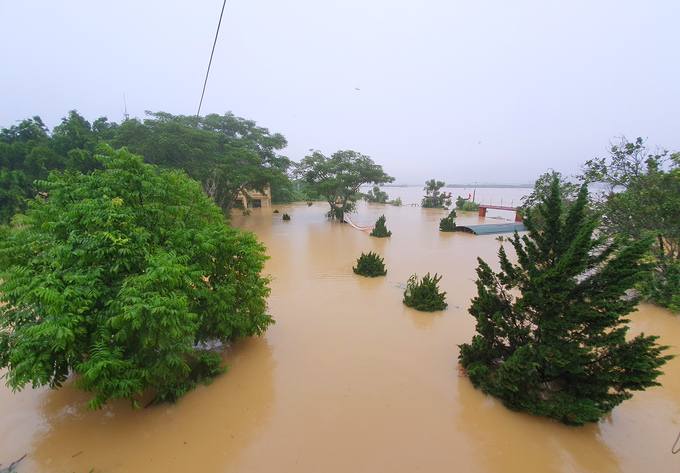 Tính đến ngày 5/9, nhiều hộ dân nước đã chạm đến nóc nhà, cổng chào trụ sở UBND xã chỉ còn mỗi nóc, khu nhà làm việc 2 tầng nước đã ngập nửa tầng 1, cán bộ trực bão phải di chuyển bàn ghế, giấy tờ, các tài sản có giá trị lên tầng 2.