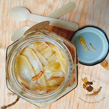 Bước 2: Xếp các lát sâm vào bình ngâm và đổ mật ong ngập sâm.