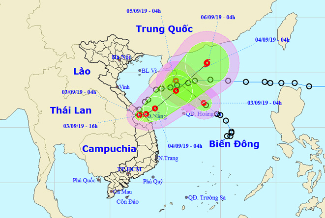 Hiện, áp thấp nhiệt đới di chuyển theo hướng Nam, mỗi giờ đi được 5 - 10 km, đi vào đất liền các tỉnh từ Quảng Trị đến Quảng Nam. Đến 16h ngày 3/9, vị trí tâm áp thấp nhiệt đới ở khoảng 16 độ Vĩ Bắc; 107,4 độ Kinh Đông, trên đất liền các tỉnh từ Quảng Trị đến Quảng Nam. Sức gió mạnh nhất cấp 6 - 7 (40 - 60 km/giờ), giật cấp 8.