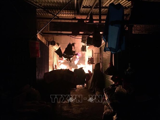 Theo TTXVN, người dân phát hiện có ngọn lửa bùng phát từ gian hàng bán vàng mã của bà N.và sau đó lan rộng ra gian hàng bên cạnh.