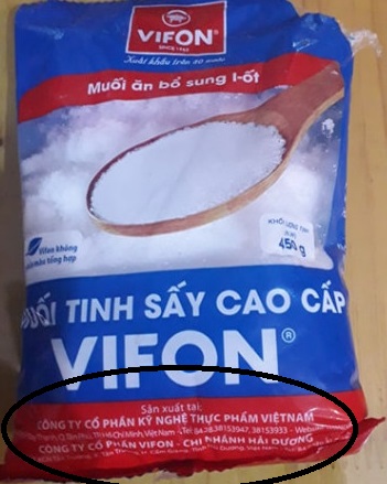 Trong danh sách sản phẩm và cơ sở sản xuất kèm theo cho thấy, trên địa bàn tỉnh Hải Dương có 02 sản phẩm là bột canh Hà Nội mới của cơ sở sản xuất Đức Hải( có địa chỉ tại Tự Tứ, Hồng Hưng, Gia Lộc, Hải Dương) cho kết quả “không đạt (không phát hiện thấy iot trong mẫu sản phẩm)” và sản phẩm muối sấy Vifon của VIFON - Công ty Cổ phần kĩ nghệ thực phẩm Việt Nam (địa chỉ 931, Trường Chinh, P. Tây Thạnh, Q. Tân Phú. TP. Hồ Chí Minh) và Công ty cổ phần VIFON chi nhánh Hải Dương (địa chỉ: Lô đất CN8KCN, xã Tân Trường, huyện Cẩm Giàng, tỉnh Hải Dương) cho kết quả “không đạt (hàm lượng iot thấp hơn chỉ tiêu chất lượng công bố và quy chuẩn)”.