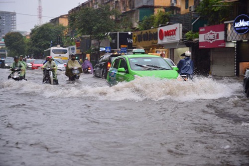 Một tuyến phố ở Hà Nội ngập nặng sau cơn mưa ngày 4/8. Ảnh: Soha.vn |