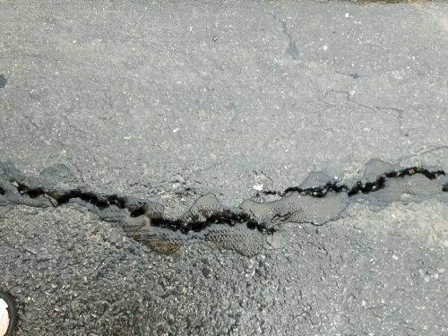 | Vết nứt trên bề mặt được đổ nhựa đường che đậy. |