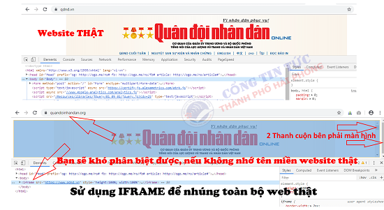 Sử dụng câu lệnh nhúng website để giả mạo toàn bộ nội dung website thật. |