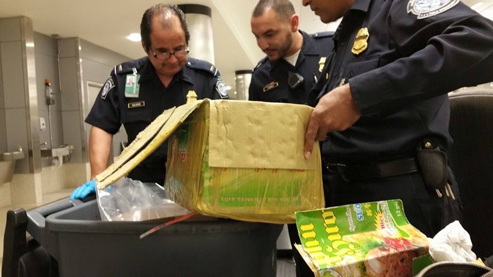 Hải quan Mỹ niêm phong và tịch thu vứt vào thùng rác. |