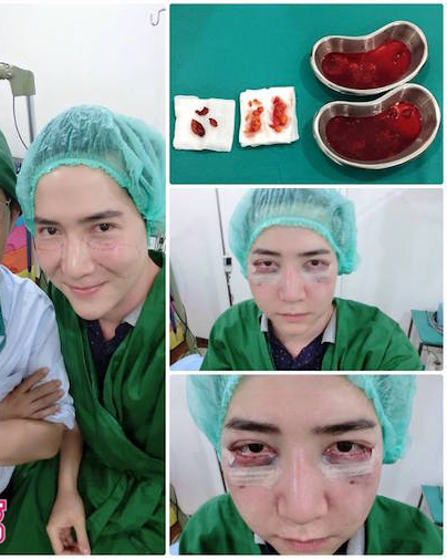 Mới đây, cư dân mạng xôn xao chia sẻ hình ảnh một chàng trai có tên là Nook tại Thái Lan có khuôn mặt biến dạng không ngờ sau khi phẫu thuật nâng má.