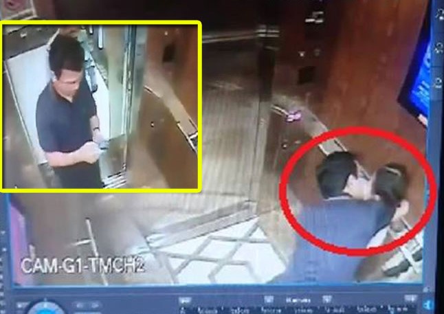 Hình ảnh ghi lại cảnh người đàn ông có hành vi "nựng" bé gái trong thang máy. |