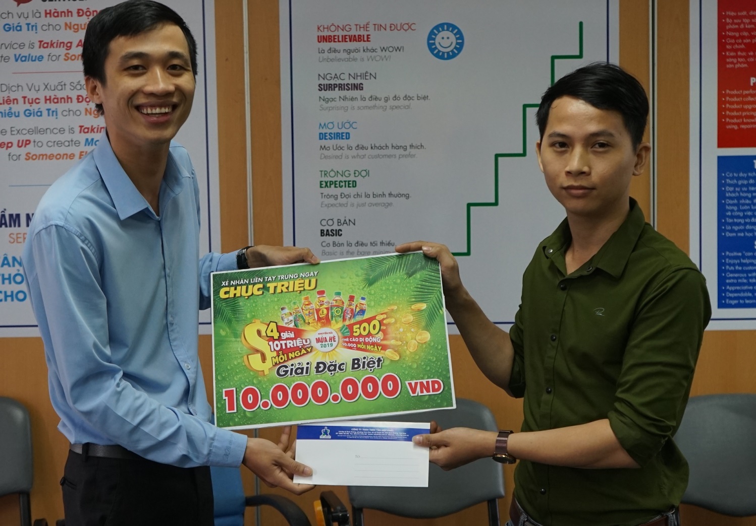 Khách hàng Phạm Xuân Hòa (Quảng Bình) nhận giải thưởng 10 triệu đồng tiền mặt |