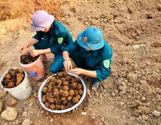 Sau trận mưa lớn, ông Ngô Hữu Huyên (ở Quảng Bình) vào thăm rừng thì tá hoả khi phát hiện 38 quả bom bi nổi trên mặt đất.
